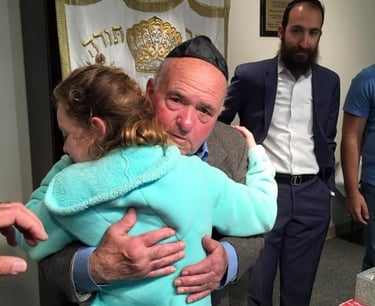 Photo of Sophia Chertog, 11 years old, from Marlboro, NJ who after hearing Mr. Sol Lurie's story, wanted to give him a hug.